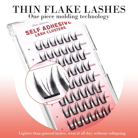 GAQQI Self Adhesive Lash Clusters, No Glue Eyelash Clusters 10-16mm Full & Volume Self Adhesive False Eyelashes, No Band Glueless Lashes
