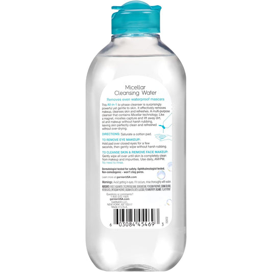 Garnier Micellar Water For Waterproof Makeup, Hydrating Facial Cleanser & Makeup Remover, Suitable for Sensitive Skin, Vegan, Cruelty Free, 13.5 Fl Oz (400mL), 1 Count