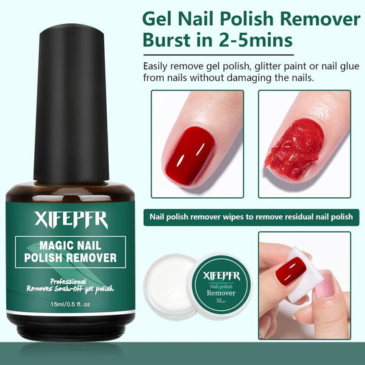 Gel Nail Polish Remover 5 Pack Professional Gel Polish Remover Non-Irritating Quick Easy,Nail Polish Gel Remover Tools Kit Nail File Cuticle Pusher Nail File Grit, No Need For Foil Soaking Or Wrapping