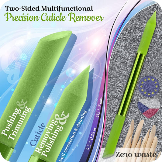 GLADZY Glass Cuticle Pusher - Manicure Cuticle Stick - Crystal Glass Cuticle Remover - Professional Nail Care Tool - Genuine Czech Quality Premium File Set