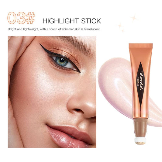 Go Ho Liquid Highlighter Wand,White Pink Highlighter Makeup Stick with Cushion Applicator,Smooth Creamy Liquid Highlighter Blendable Glowing Face Illuminator Contouring Makeup,03# Highlighter Makeup