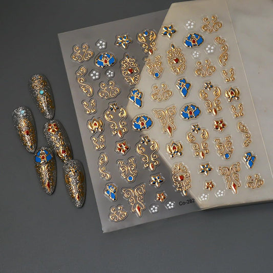 Gold Nail Stickers for Nail Art Gemstone Nail Decals with Golden Filigree Design,Luxury Baroque-Style Stickers for Nails 3D Self Adhesive Nail Art Supplies & Decorations for Women Girls 1 Sheet