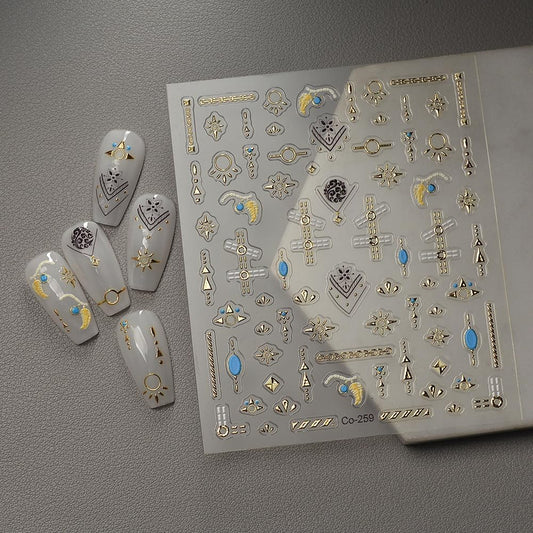 Gold Silver Star Moon Nail Art Stickers Decals Bohemia Nails Decals Self-Adhesive Nails Stickers for Nail Art