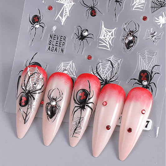 Halloween Nail Stickers 1 Sheet 3D Embossed Nail Art Stickers DIY Self-Adhesive Nails Decals Stickers with Colorful Spider Glitter Designs Holiday Nail Art Decorations