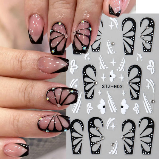 Halloween Nail Stickers 3D Self Adhesive Nail Art Stickers Ghost Nail Decals Spider Web French Tips Heart Flame Black White Design Spider Nails Sticker for Nails Art for Women DIY Manicure 6 Sheets