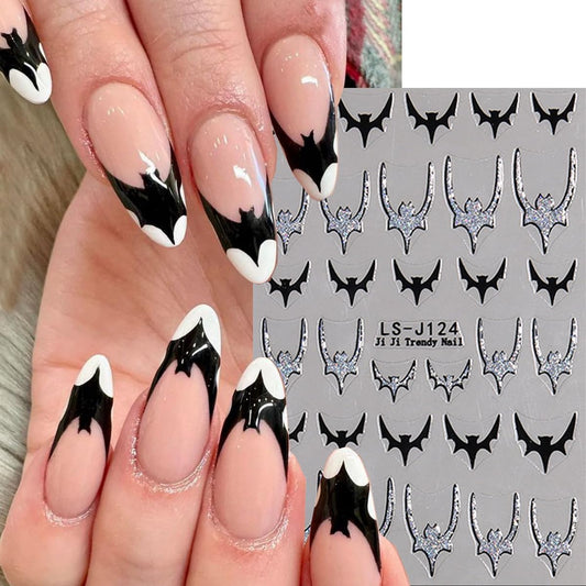 Halloween Nail Stickers Spider Nail Decals Ghost Nail Art Stickers Glitter Spider Web Bat Black Silver Design Bat French Tips Self Adhesive Nail Sticker for Nail Art Manicure Accessories 6Sheets