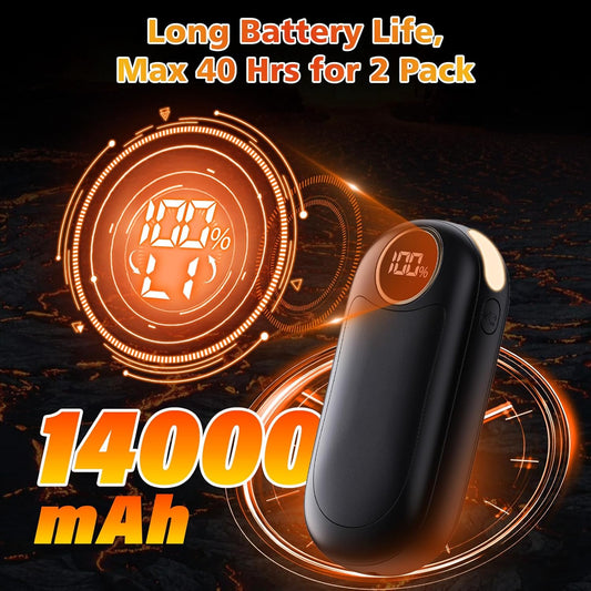 Hand Warmers Rechargeable 2 Packs, Double Sided Heating with AI Charging Case, 14000mAh Electric Hand Warmer Up to 36 Hours, Portable Heater Gifts for Christmas,Camping,Hunting