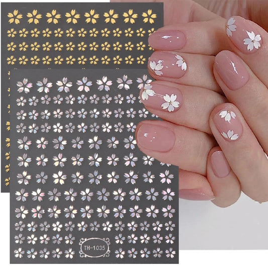 Heart Flowers & Star Nail Stickers, Laser Silver & Gold Star Nail Decals - 3D, Self-Adhesive, DIY Nail Art Designs for Women