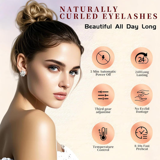 Heated Eyelash Curler for Women, Electric Lash Curler with 10s Fast Heating, 4 Adjustable Temp (65°C-95°C), 24H Curl, USB-C Rechargeable, Ergonomic Design, Travel-Friendly Makeup Tool Gift