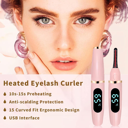Heated Eyelash Curler with LED Display, Rechargeable Lash Curler with Adjustable Temperature, Auto-Off, Natural & Long-Lasting Curl