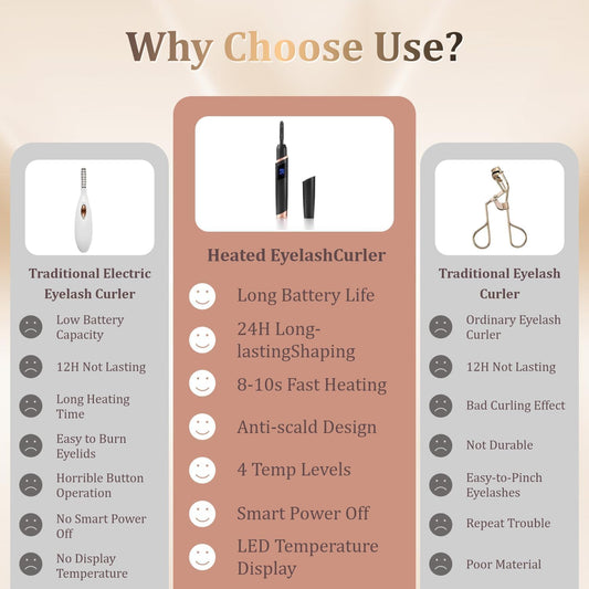 Heated Eyelash Curler, Mini Electric Eyelash Curler, Best Eye lash Curler 10-Second Salon Curls, Dual-Temperature Smart Memory, Safe & Travel-Friendly