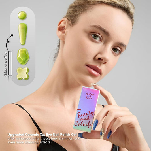 High-Density Cat Eye Gel Nail Polish with Magnet Stick, 15ml Dopamine Color Palette, Magnetic Effect Gel for DIY Manicure, Multiple Color Options - Ocean Luster
