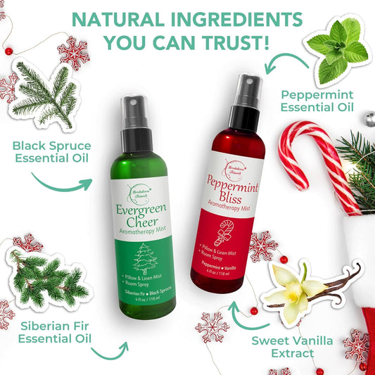 Holiday Aromatherapy Mist 2-Pack – Evergreen Cheer & Peppermint Bliss | Natural Air Freshener & Linen Mist | Perfect Christmas Room Spray & Stocking Stuffer
