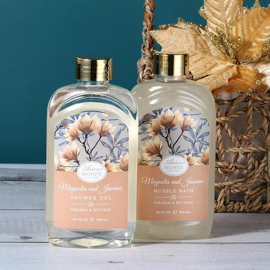 Home Spa Gift Basket, Bath Spa Kit for Women, with Body Lotion, Shower Gel, Bubble Bath, Body Scrub, Bath Salt, Bath Bomb, Bath Gift Set for Mother, Wife Her, with Magnolia and Jasmine Scent