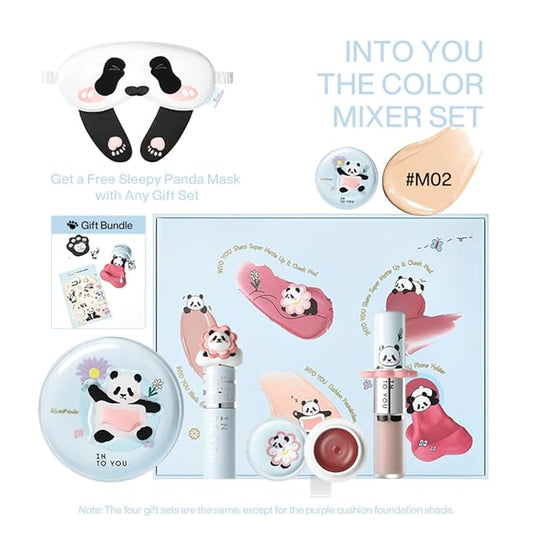INTO YOU x M.Lan Panda The Color Mixer Set Limited Edition - 7 pieces Makeup Box Sets, Matte Lipstick + Canned Lip Mud + Blush & Highlight Duo + Cushion Foundation + Gift Bundle, M02 Set