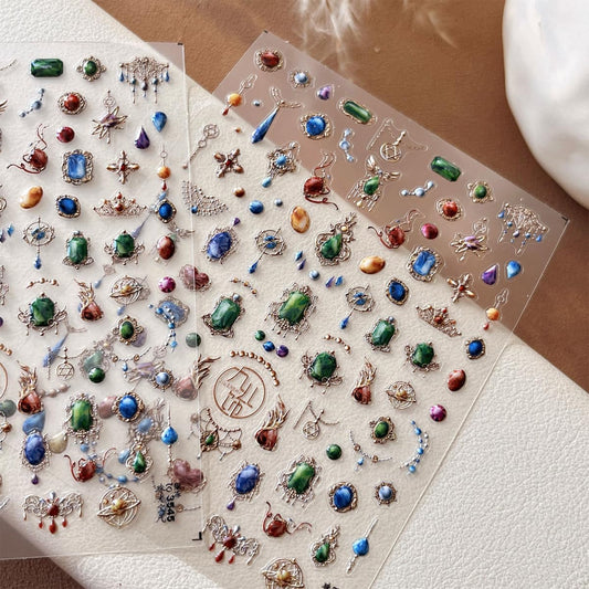 Jewels Nail Stickers for Nail Art 3D Necklace Pendant Jewels Gems Shaped Nail Decals Luxury Stickers for Nails Designs Self Adhesive Nail Art Supplies & Decorations for Women 1 Sheet