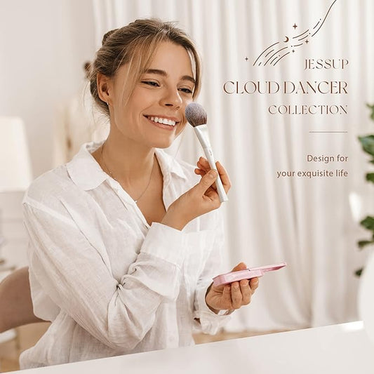 Jessup Makeup Brushes Set 14pcs Highend Makeup Gift Set for Women Include Foundation Concealer Blush Contour Powder Eye Shadow Brush, Makeup Sponge, Makeup Brush Cleaner and Towel, Pearl White T333