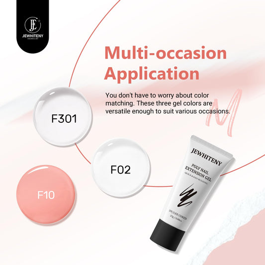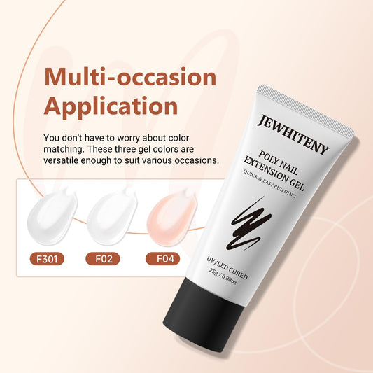 JEWHITENY Poly Nail Gel Set Clear Pink White Neutral Classic Color Poly Extension Gel With Base and Top Coat Slip Solution French Manicure for Home DIY Need U V Lamp Curing