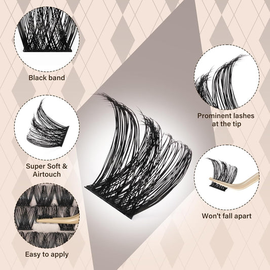 JMS&JMS DIY Lash Extension 280PCS Lash Clusters D Curl Individual Lashes 40D+50D 9-16MIX Cluster Eyelash Extensions at Home