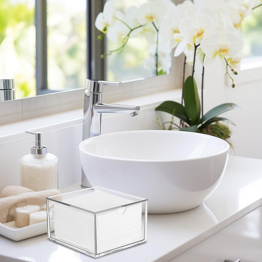 Rainmae Disposable Face Towel Holder, Face Towel Storage Box Bin, Stackable Clear Makeup Organizer with Drawer for Clean Skin Club Face XL Towels Holder for Vanity Bathroom and Makeup Organization