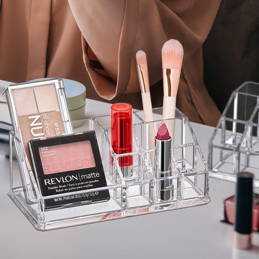 Amazing Abby - Tiffany - Acrylic Cosmetic Organizer, Transparent Plastic Makeup Holder, Compartmented, Shatter-Proof, Perfect Bathroom Vanity Storage Solution for Beauty Supply, Small
