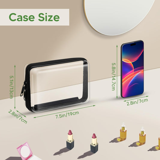 Extra Durable Mini Clear Hard Shell Zipper Case 6 Pack, 2x 12" Large, 2x 8" Medium, 2x 5" Small, Clear Travel Makeup Case, Hard Plastic Toiletry & Cosmetic Bag, Zippered Make Up Organizer Pouch