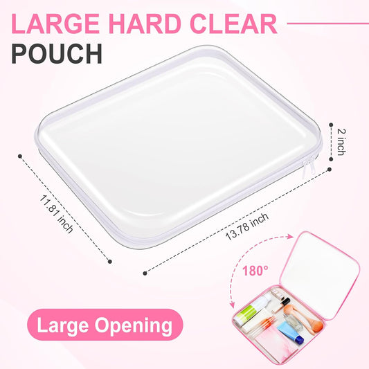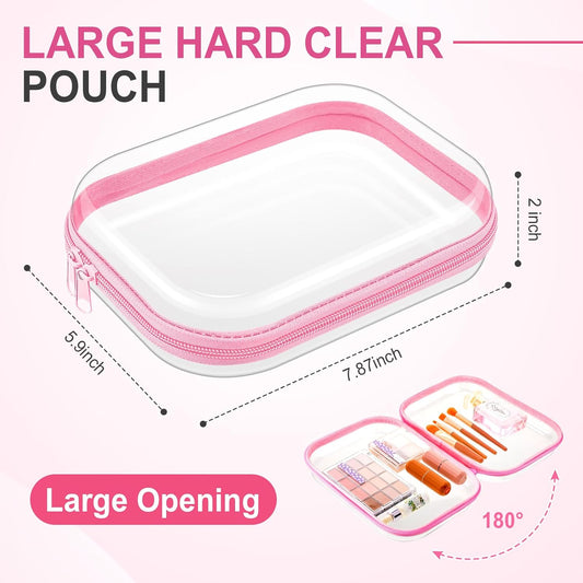 Sanwuta 6 Pcs Clear Hard Zipper Case Pencil Pouches Hard Plastic Zipper Pouches Makeup Bag Transparent Cases for Snacks Plastic Storage Organizer Box for Travel(Pink,9.84 x 7.87 x 2 Inch)