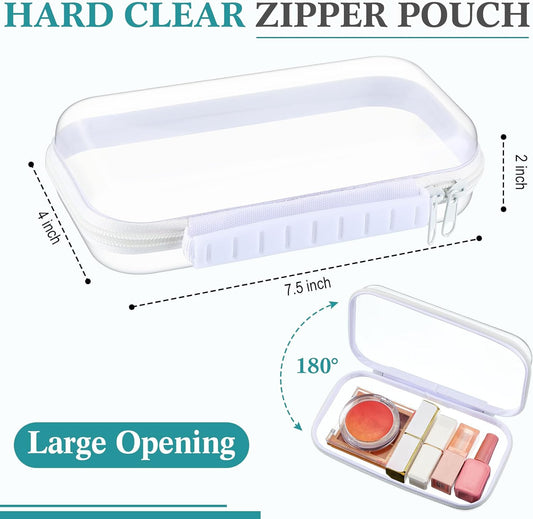 Sanwuta 6 Pcs Clear Hard Zipper Case Pencil Pouches Hard Plastic Zipper Pouches Makeup Bag Transparent Cases for Snacks Plastic Storage Organizer Box for Travel
