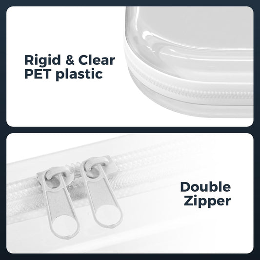 Set of 2 - Hard Sided Clear Zipper Case for Storage - Professional-Grade Plastic Hard Shell Zippered Organizers, Cosmetic Bag, Snack Bins