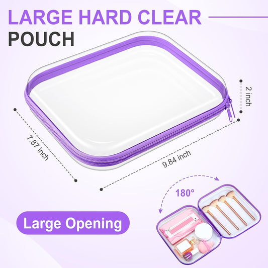 Sanwuta 6 Pcs Clear Hard Zipper Case Pencil Pouches Hard Plastic Zipper Pouches Makeup Bag Transparent Cases for Snacks Plastic Storage Organizer Box for Travel(Purple,9.84 x 7.87 x 2 Inch)