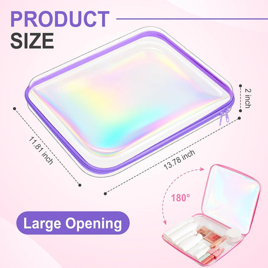 Sanwuta 6 Pcs Clear Hard Zipper Case Pencil Pouches Hard Plastic Zipper Pouches Makeup Bag Transparent Cases for Snacks Plastic Storage Organizer Box for Travel(Holographic,13.78 x 11.81 x 2 Inch)