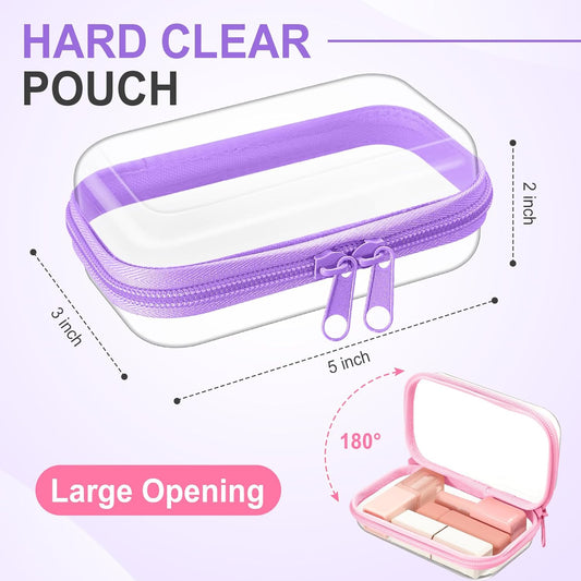 Sanwuta 6 Pcs Clear Hard Zipper Case Pencil Pouches Hard Plastic Zipper Pouches Makeup Bag Transparent Cases for Snacks Plastic Storage Organizer Box for Travel (Colorful,5 x 3 x 2 Inch)