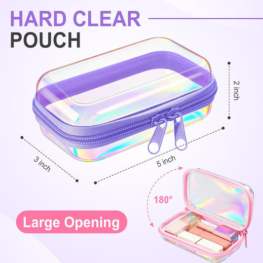 Sanwuta 6 Pcs Clear Hard Zipper Case Pencil Pouches Hard Plastic Zipper Pouches Makeup Bag Transparent Cases for Snacks Plastic Storage Organizer Box for Travel(Holographic,5 x 3 x 2 Inch)