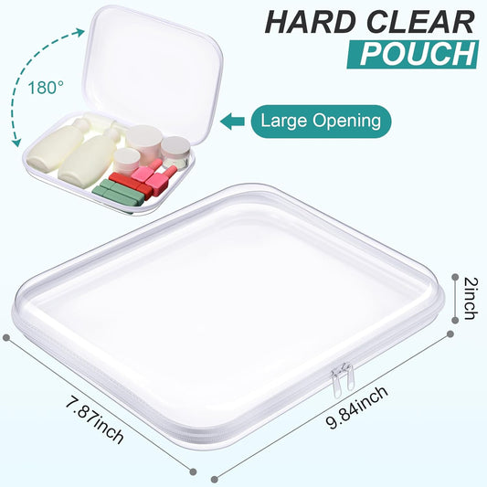 Sanwuta 6 Pcs Clear Hard Zipper Case Pencil Pouches Hard Plastic Zipper Pouches Makeup Bag Transparent Cases for Snacks Plastic Storage Organizer Box for Travel(White,9.84 x 7.87 x 2 Inch)