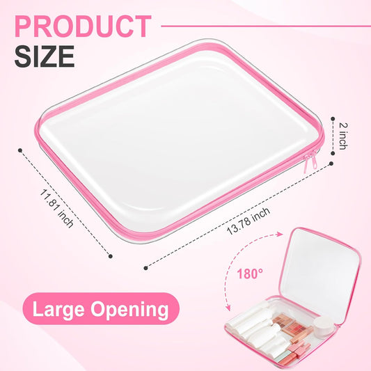 4 pcs Clear Zipper Pouches, Hard Shell Zipper Case, Makeup Organizer Travel Toiletry bag, Diaper Bag, Travel Organizer, Clear Cosmetic Bag,Toy Storage Bins (M+3S Pink)