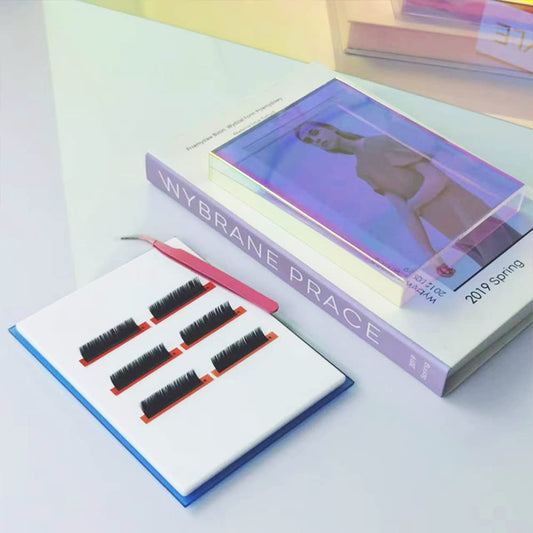Grafting False Eyelash Acrylic Extension Pallet Organizer, Eyelash Extension Glue Tweezers Plate Makeup Palette, Dustproof Storage Box Display Training Tools Salon (Dazzling L with cover)