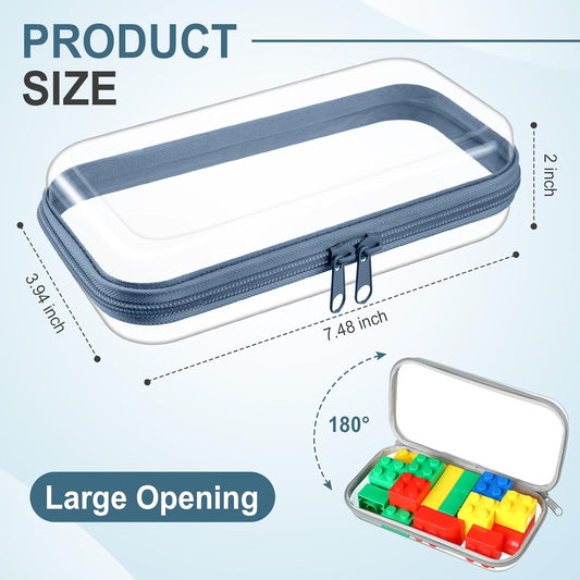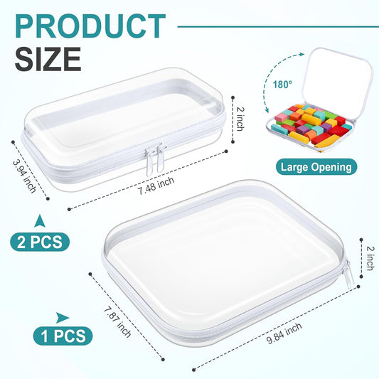 Hoolerry 3 Pcs Clear Hard Zipper Case Plastic Pouch Transparent Hard Case Clear Makeup Bag Portable Travel Organizer Bin for Cosmetics, Building Blocks, Puzzles(White,Mss)