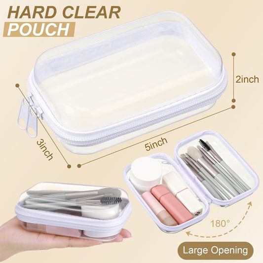 Hoolerry 3 Pcs Clear Hard Zipper Case Plastic Pouch Transparent Hard Case Clear Makeup Bag Portable Travel Organizer Bin for Cosmetics, Building Blocks, Puzzles(White,Xs)
