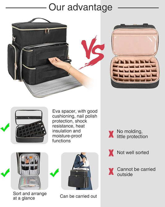Nail Polish Organizer Case, Large Nail Polish Holder Hold 64 Bottles (15ml/0.5 fl.oz), Large Capacity for Nail Polish, Nail Lamp, Nail Art Accessories, 3 in 1 Storage Bags