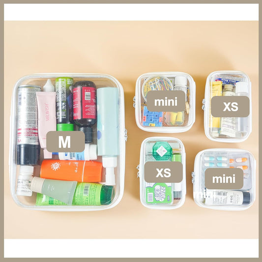 5 pcs Clear Zipper Pouches, Toiletry Bag for Travel, Stackable Waterproof Diaper Bag, Zipper Pouch, Travel Organizer, Clear Cosmetic Bag,Toy Storage Bins (M + 2Mini + 2XS)