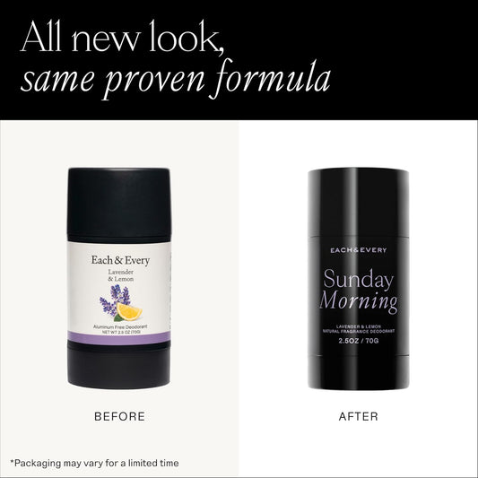 Each & Every Aluminum Free Deodorant for Women & Men, Lavender & Lemon - All Natural Deodorant for Sensitive Skin, EWG Verified - Clean, Baking Soda-Free, Plant-Based Fragrance - 2.5oz, 2 Pack