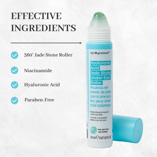 masque BAR My Ingredients Hydrating Under Eye Serum with 360° Jade Stone Roller (Hyaluronic Acid)