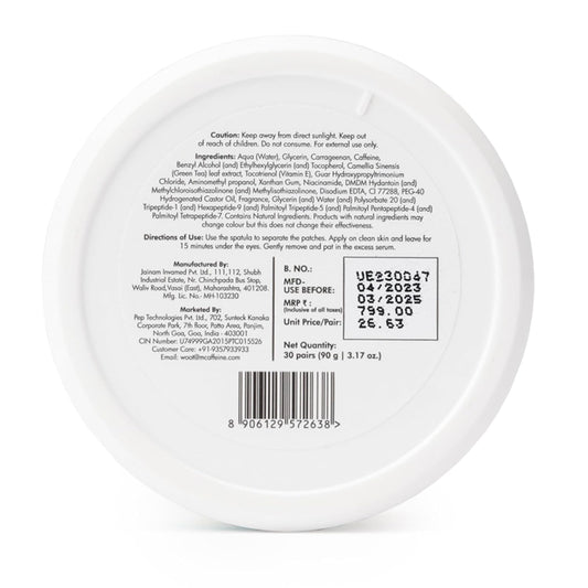 mCaffeine Green Tea Hydrogel Under Eye Patches for Dark Circle, Fine Lines & Wrinkles Reduction | Cooling Under Eye Patch Mask for Instant De-Puffing | 30 Pairs
