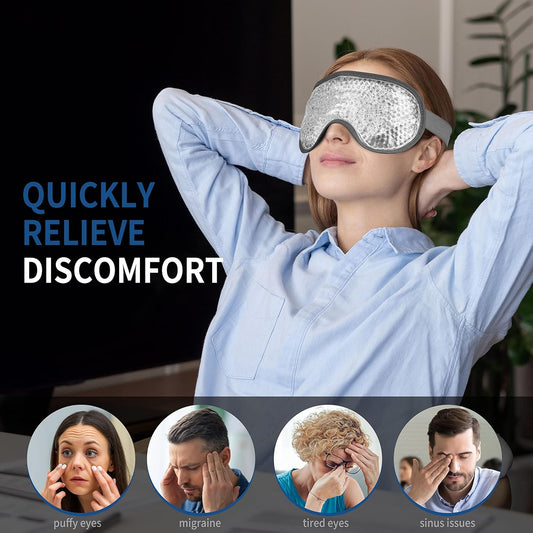 Cooling Eye Mask with Gel Bead, Reusable Cold Compress Ice Pack Sleeping Eye Cooling Pads for After Eyelid Surgery, Puffiness, Puffy Eyes, Headache, Migraine Relief(Grey)