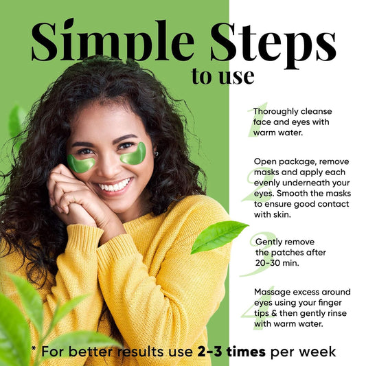 LE GUSHE Under Eye Mask & Under Eye Patches (20 Pairs) - Green Tea Eye Mask with Collagen & Amino Acid, Cooling Eye Care for Wrinkles, Puffy Eyes & Dark Circles, Brightening Skincare