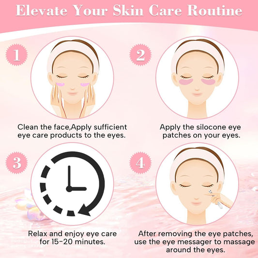 Under Eye Patches Silicone - 2 Pcs Reusable Eye Patches, Eye Patches Plump Fine Lines & Wrinkles with Metal Eye Cream Applicator, Tin Case