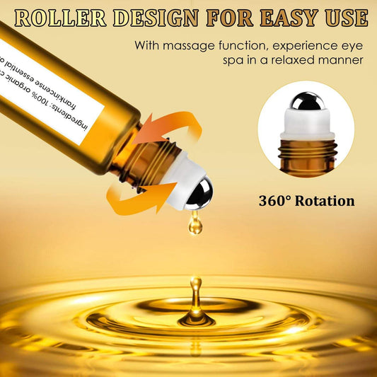Time Eraser Oil, 2PCS Time Eraser Roller Ball Castor Oil, Time Eraser for Puffy Eye Bags Fine Lines Dark Circles Wrinkles with 360° Eye Roller Massage Ball