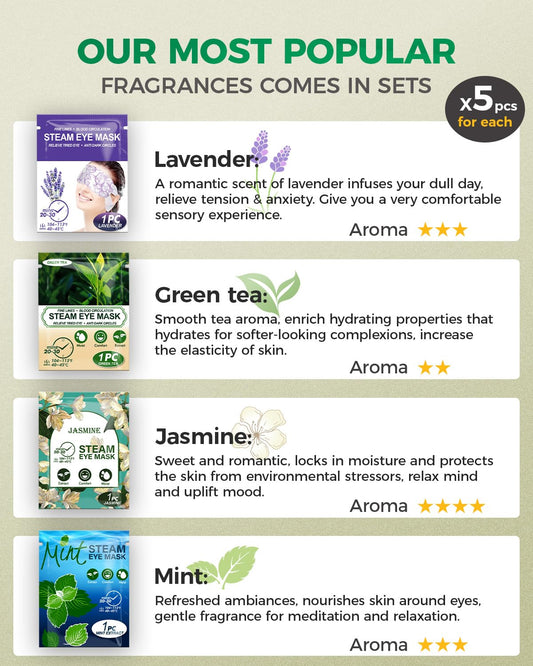 20-Pack Steam Eye Masks for Dry Eyes, Warm Eye Mask, Relief Eye Fatigue & Dark Circle, Heat Sleep Eye Mask for Puffy Eyes, Disposable Eye Mask, Moist Hot Compress Eye Patch for Sleeping, 4 Flavors