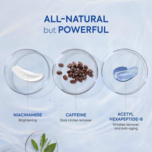 Korean Caffeine Collagen Eye Cream: Puffiness & Dark Circles Under Eye Treatment - Anti-Aging with Peptides & Hyaluronic Acid, 1 oz / 30g