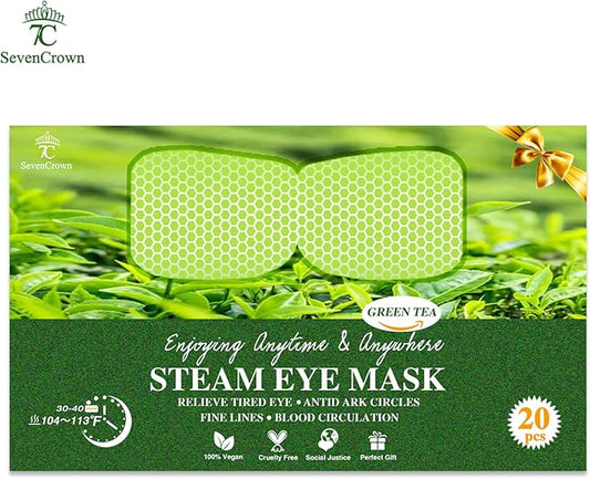 Steam Eye Mask for Travel Essentials,Sleep Mask,Green Tea Warm Compress for Eyes,Heated Eye Mask Reduce Puffiness & Dark Circles, Hydrate & Soothe Tired Eyes,Self Care SPA Gifts for Women,20 Packs